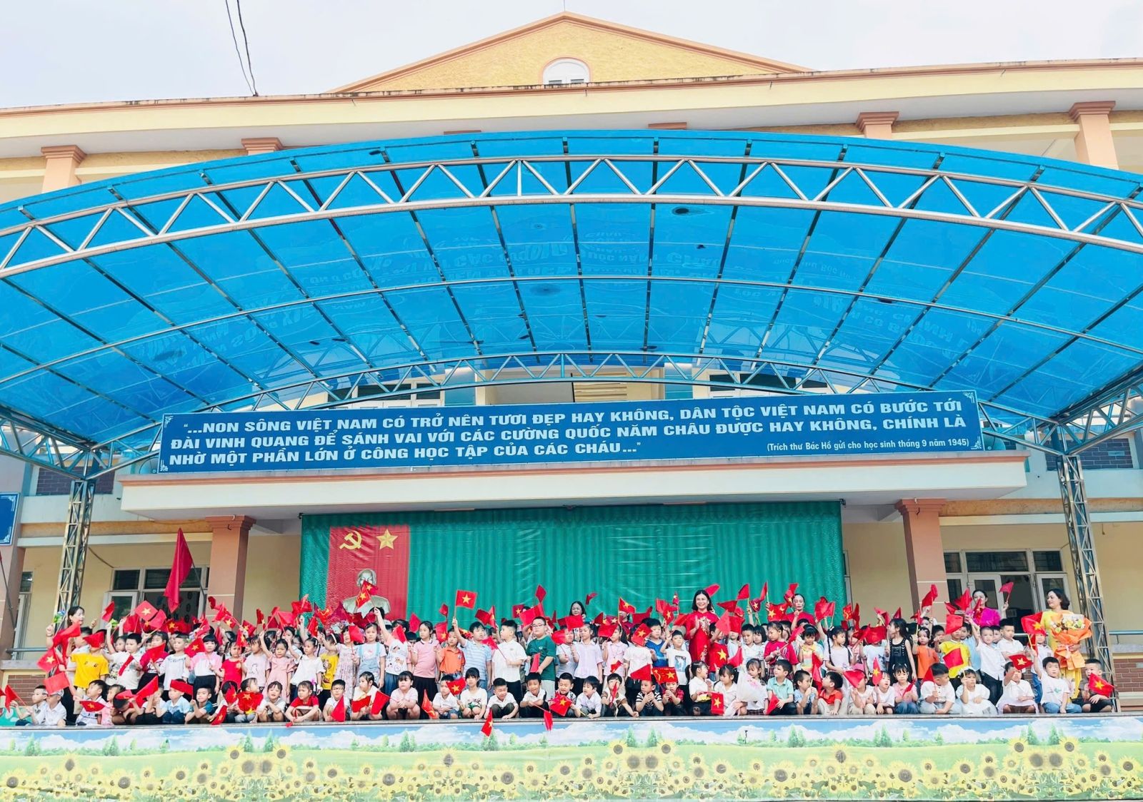 Thực hiện Quyết định số 426/ QĐ – UBND ngày 18/8/2025 về Ban hành kế hoạch thời gian năm học 2025-2026 đối với Giáo dục mầm non, Giáo dục phổ thông, Giáo dục thường xuyên tỉnh Ninh Bình, hôm nay ngày 22/8/2025 Trường tiểu học Đồng Văn tưng bừng chào đón 226 em học sinh 6 tuổi vào lớp Một của trường. Từ hôm nay các em chính thức bước vào ngôi trường mới – nơi mở ra bao điều kỳ diệu của tri thức, nơi nuôi dưỡng và chắp cánh cho những khát vọng tuổi thơ; các em sẽ bắt đầu hành trình học tập, rèn luyện và trưởng thành trong mái trường tiểu học Đồng Văn thân yêu!