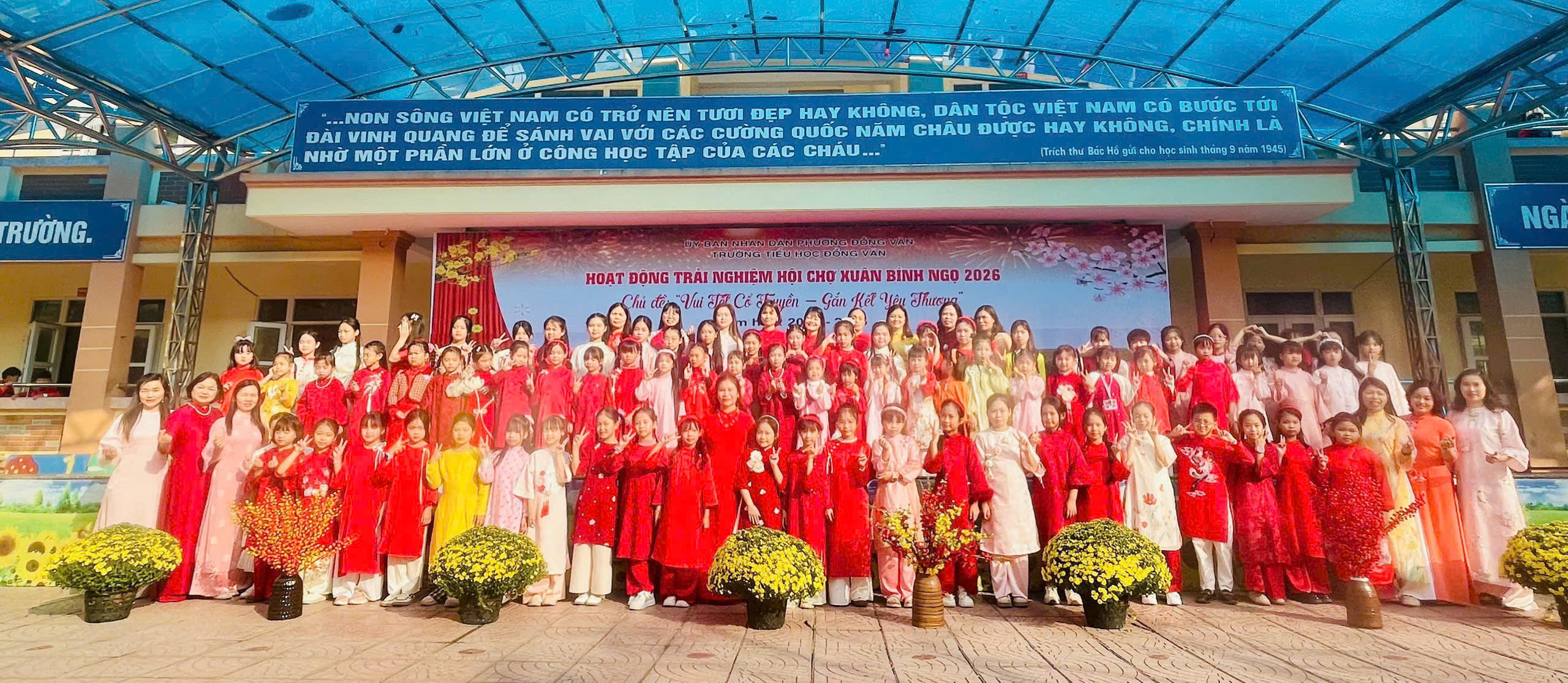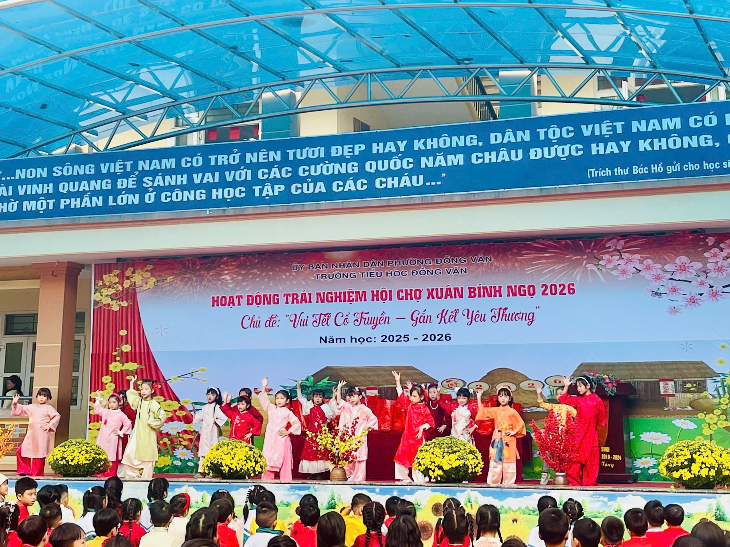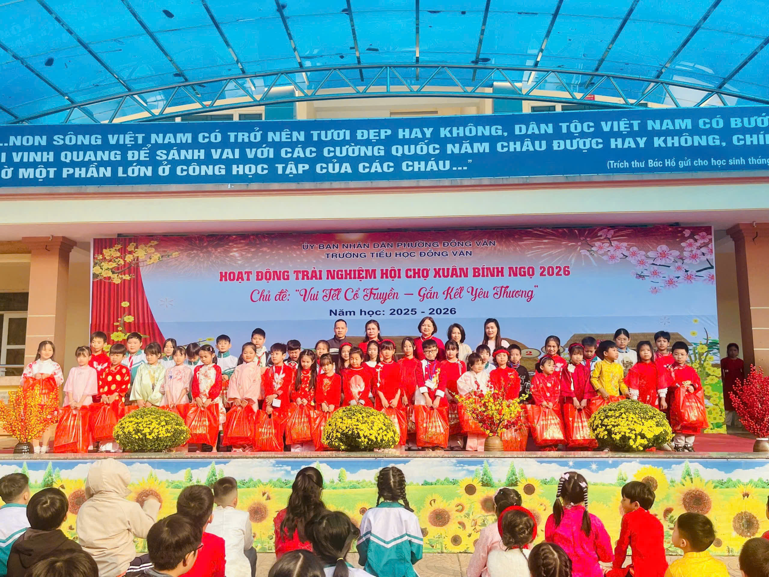 Trong không khí rộn ràng chào đón mùa xuân mới, Trường Tiểu học Đồng Văn đã tổ chức Hoạt động trải nghiệm Hội chợ Xuân Bính Ngọ 2026 với chủ đề “Vui Tết cổ truyền – Gắn kết yêu thương”. Chương trình đã mang đến một không gian Tết đậm đà bản sắc dân tộc, ấm áp và tràn đầy niềm vui.