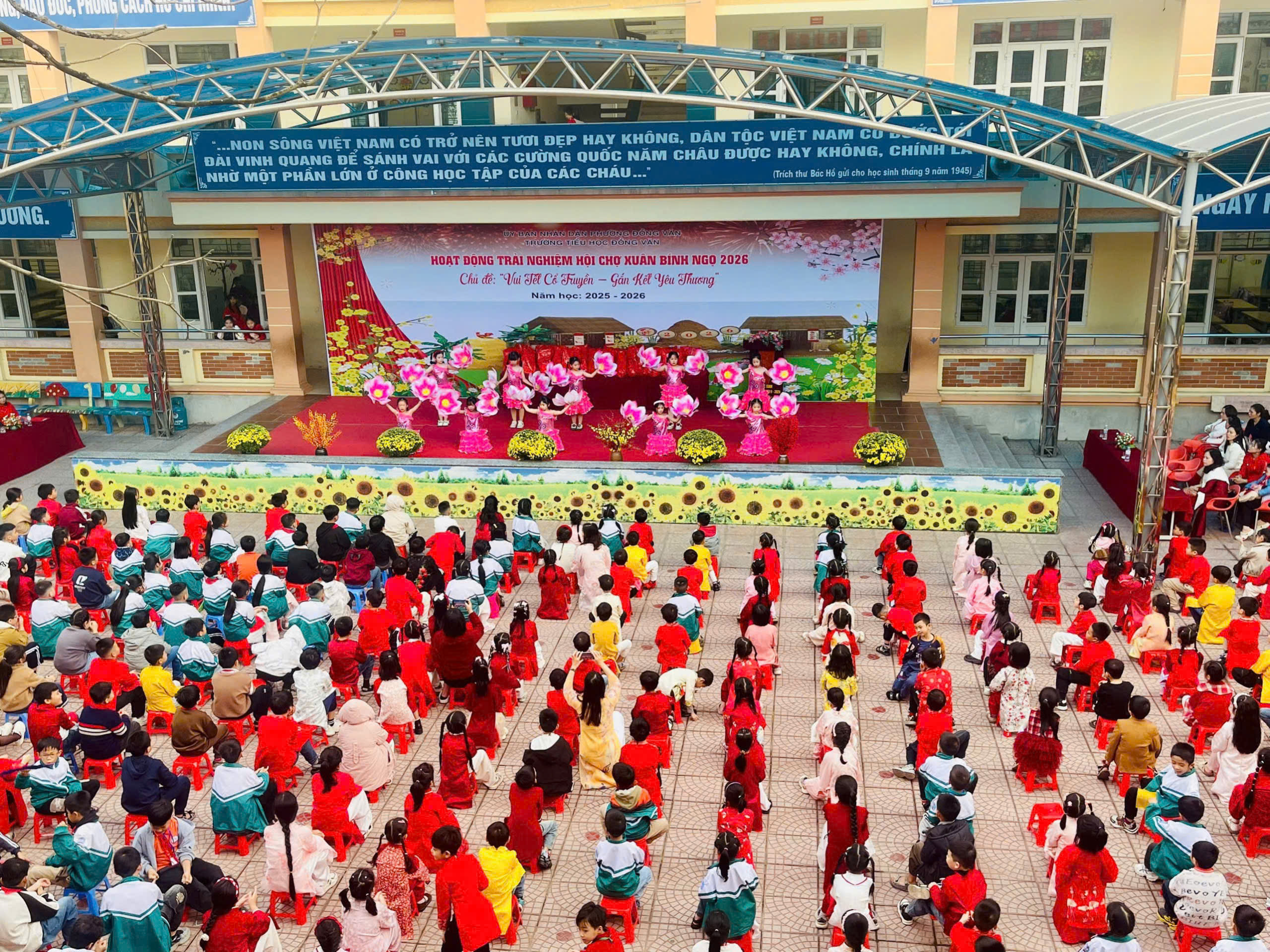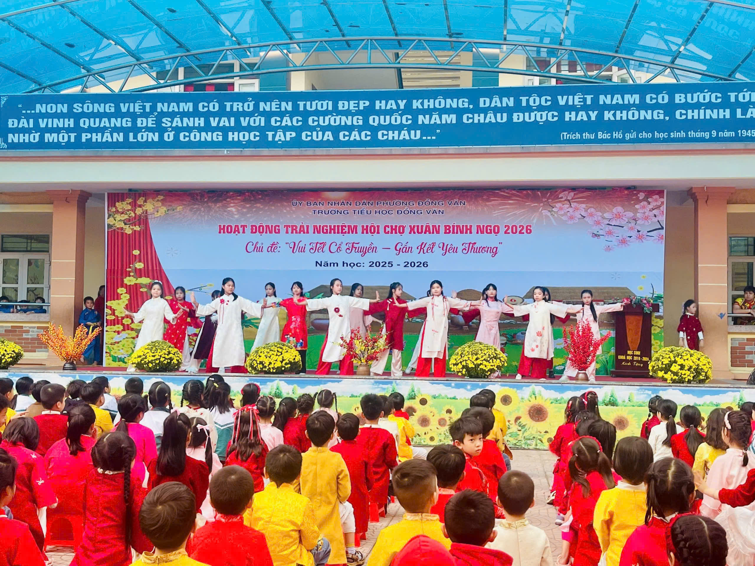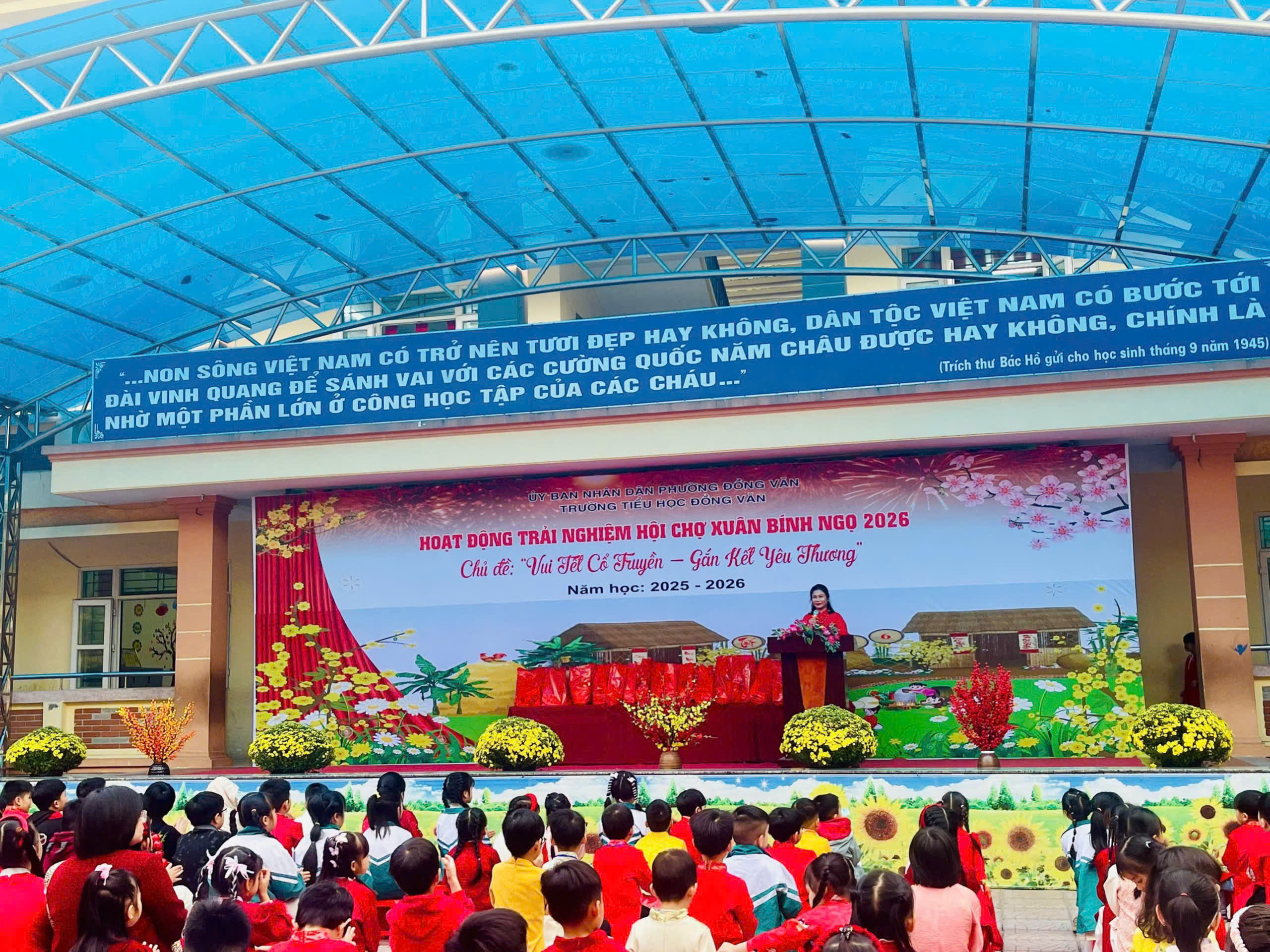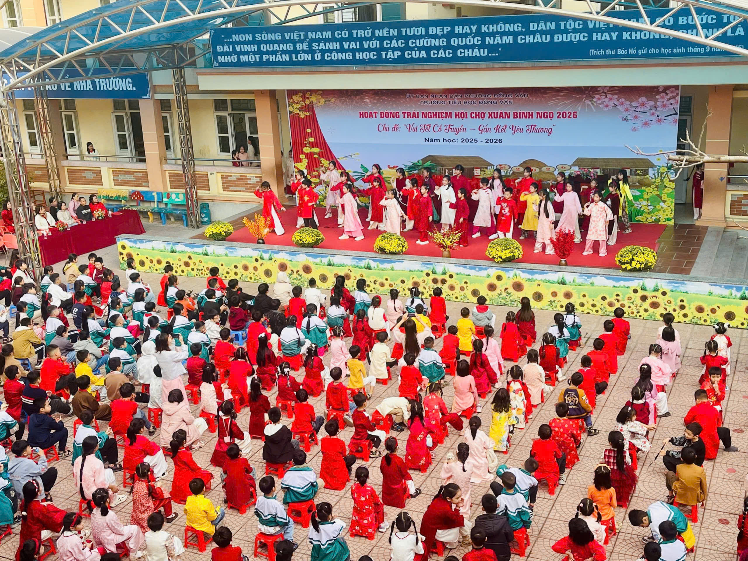 Trong không khí rộn ràng chào đón mùa xuân mới, Trường Tiểu học Đồng Văn đã tổ chức Hoạt động trải nghiệm Hội chợ Xuân Bính Ngọ 2026 với chủ đề “Vui Tết cổ truyền – Gắn kết yêu thương”. Chương trình đã mang đến một không gian Tết đậm đà bản sắc dân tộc, ấm áp và tràn đầy niềm vui.