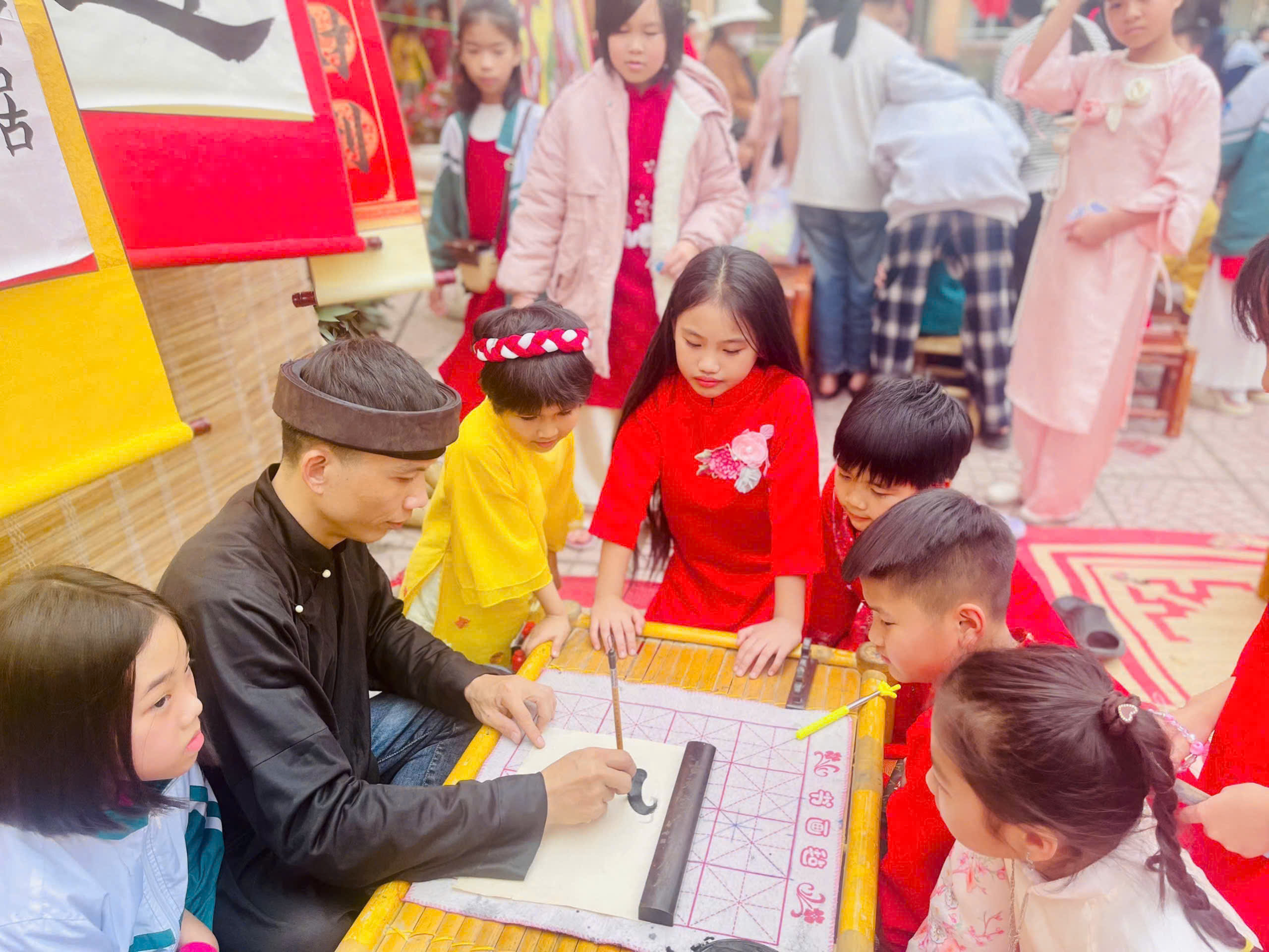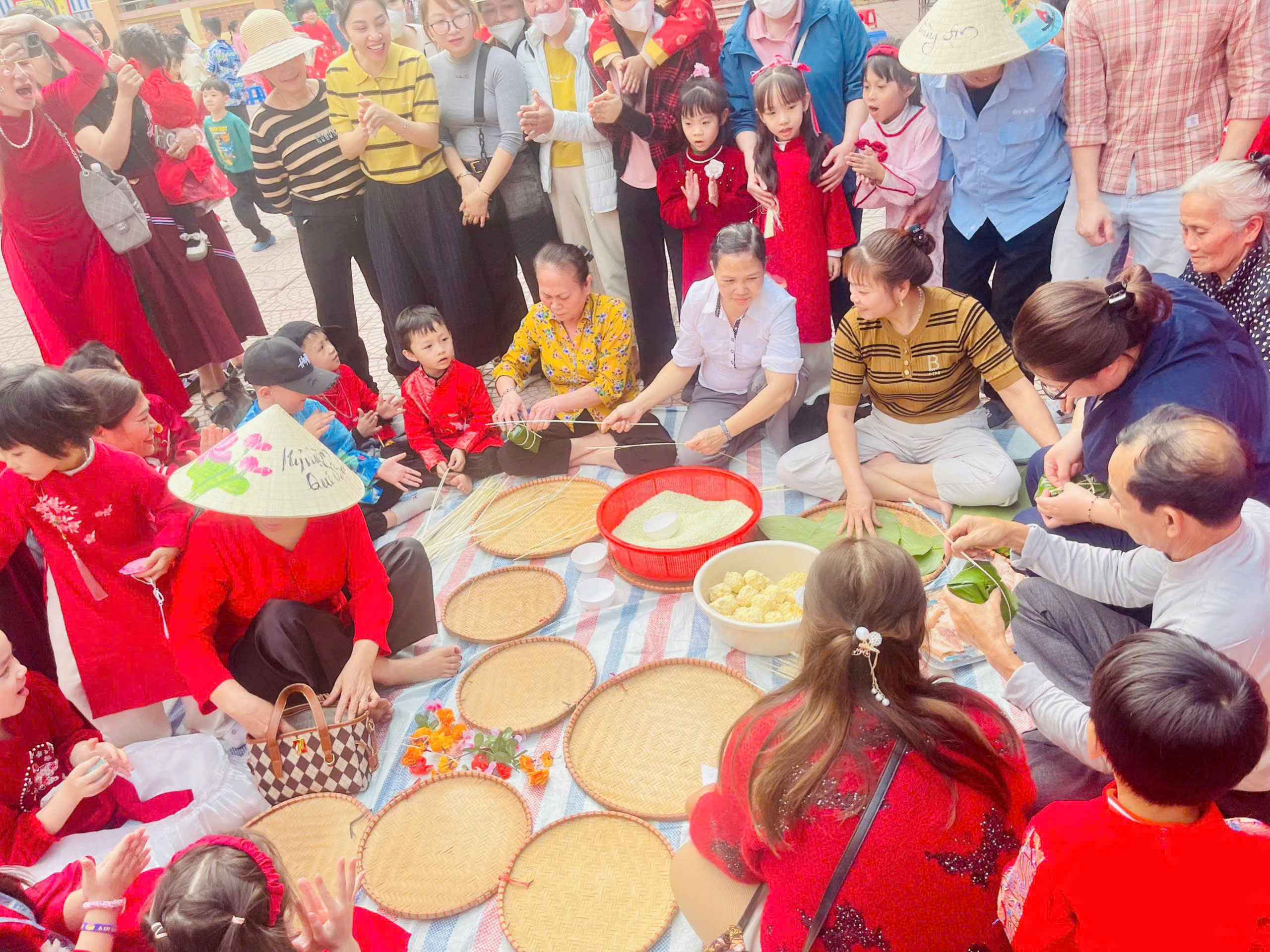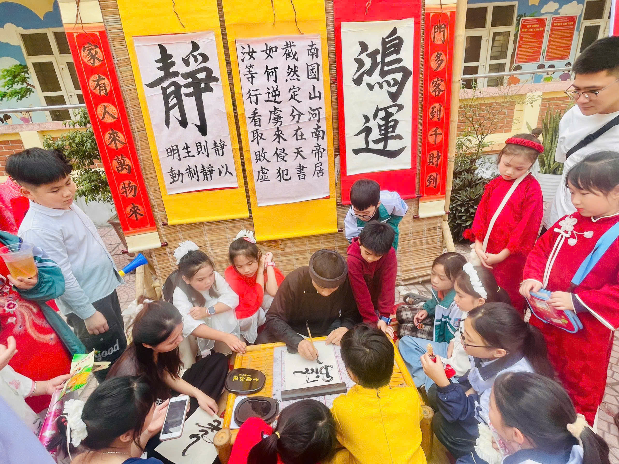 🎋 Hội chợ diễn ra sôi nổi với những hoạt động: văn nghệ, múa lân, múa rồng, võ Vovinam, gian hàng trưng bày sản vật ngày Tết, viết thư pháp, nặn tò he, gói bánh trưng, trò chơi dân gian… Các em học sinh được trực tiếp tham gia trải nghiệm, rèn luyện kỹ năng giao tiếp, hợp tác, sáng tạo và hiểu thêm về ý nghĩa của Tết cổ truyền Việt Nam.