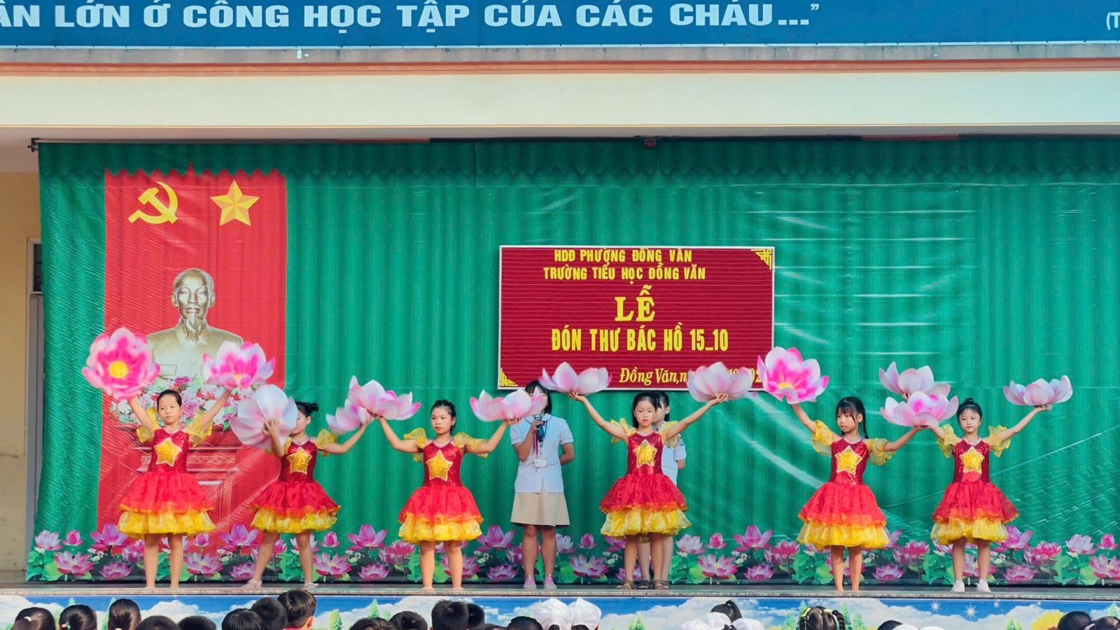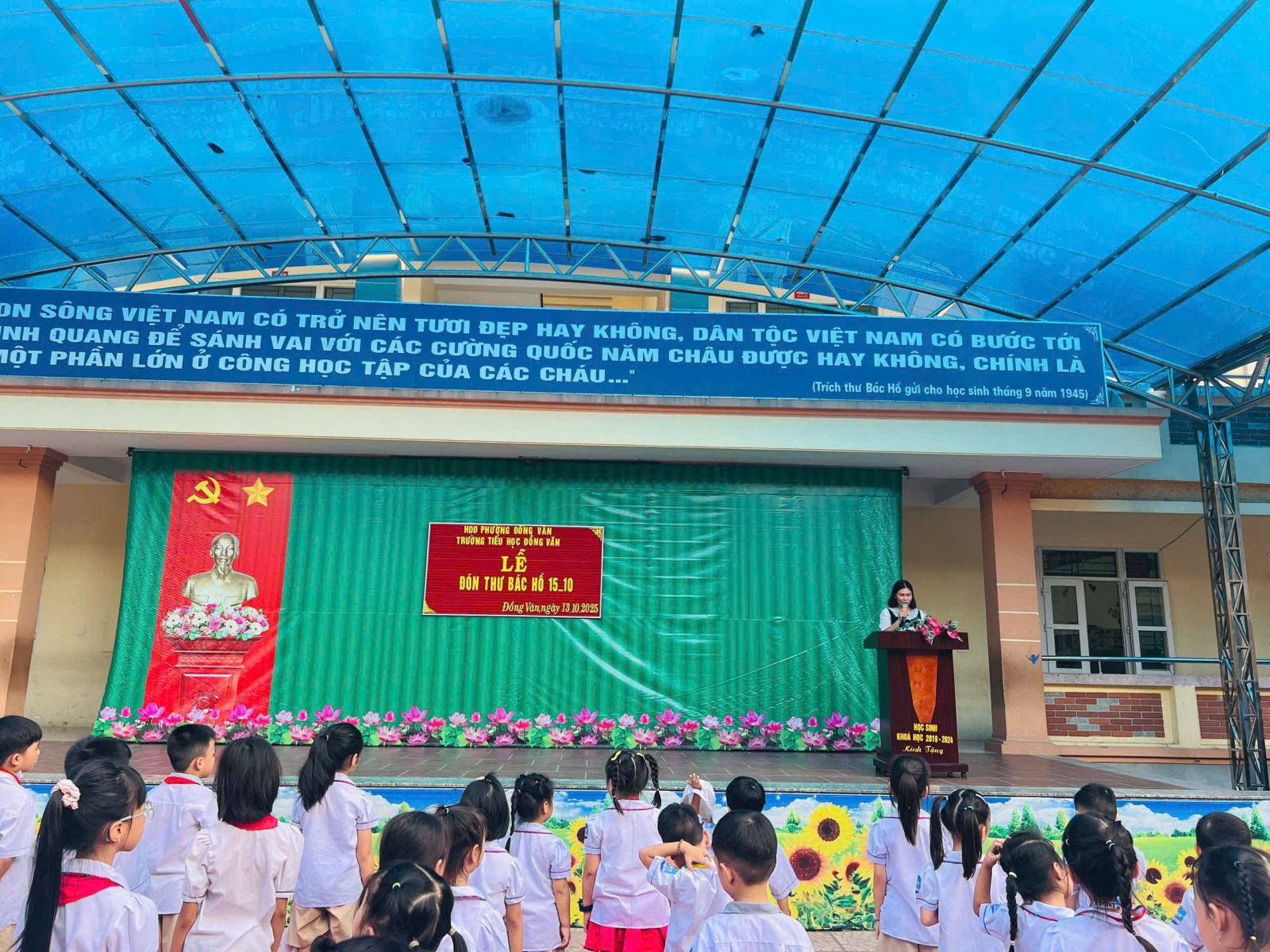 Sáng thứ Hai, ngày 13/10/2025, trong không khí trang nghiêm của tiết sinh hoạt dưới cờ đầu tuần, Trường Tiểu học Đồng Văn long trọng tổ chức Lễ đón Thư Bác Hồ và phát động phong trào thi đua năm học 2025–2026.