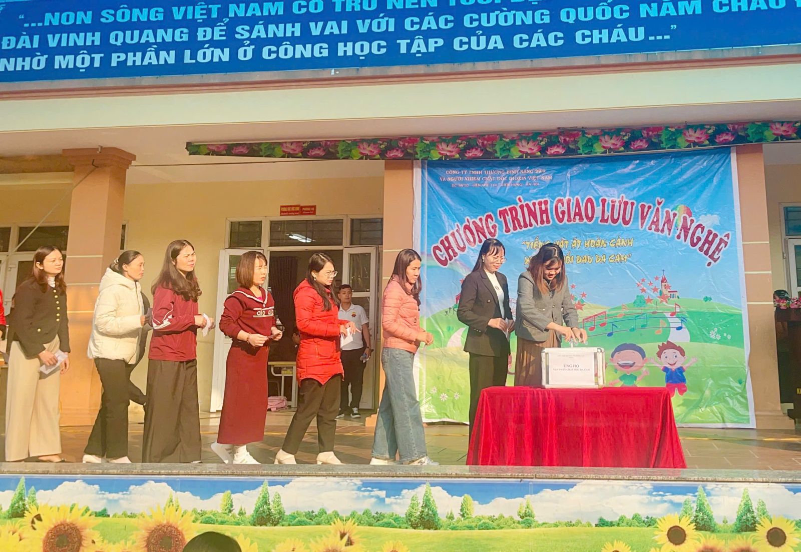 Tại chương trình giao lưu, với tấm lòng nhân ái và tinh thần sẻ chia sâu sắc, thầy và trò nhà trường đã chung tay quyên góp, ủng hộ được số tiền 16.385.000 đồng, góp phần san sẻ khó khăn, đồng cảm và tiếp thêm nghị lực cho các nạn nhân chất độc da cam.